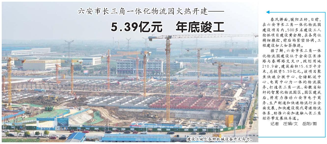【皖西日報(bào)】六安市長三角一體化物流園火熱開建——5.39億元 年底竣工