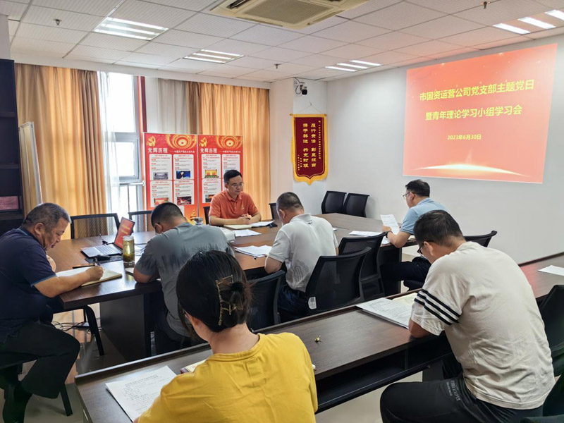 6月30日,市國資公司黨支部舉行學習會暨慶?!捌咭弧睂n}黨課活動,支部全體黨員、入黨積極分子、入黨申請人、青年理論學習小組成員參加會議。